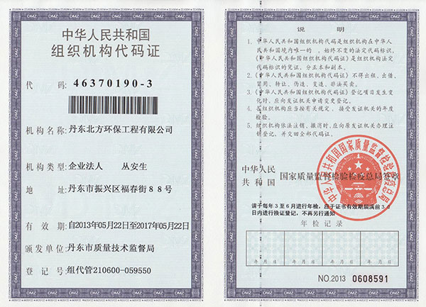 北環(huán)公司組織機(jī)構(gòu)代碼證
