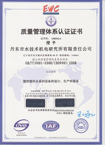 水所質(zhì)量體系證書(shū)
