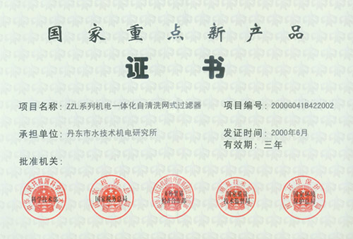國家重點新產(chǎn)品-自清洗過濾器