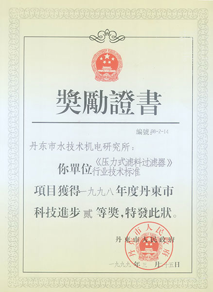 壓力濾料過(guò)濾器市二等獎(jiǎng)